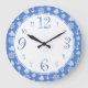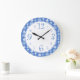 Motif nautique rétro amusant horloge en bleu et blanc croustillant grand nombre jouant pour la cuisine côtière.