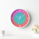 Une horloge minimaliste très simple, rose/orange mélangé avec un centre vert clair rond. Chiffres blancs et cadre pour correspondre.Une belle horloge rafraîchissante pour votre cuisine!