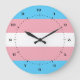 Horloges aux murs ronds avec drapeau de fierté transgenre à rayures bleues, roses et blanches, motif rayées