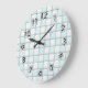 Carreaux muraux vintages des années 1950 sur des horloges avec un motif en céramique imprimé bleu et blanc. Personnalisez le visage de l'horloge dans cette décoration murale décorative design horloge pour une touche rétro décorateur. Ajoutez à votre chambre une cuisine, une salle de bain, garçons ou filles, ou une chambre avec un look rétro vintage 1950 ou 1960.