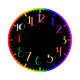 Horloge à l'allure psychédélique et amusante avec une numérotation colorée.