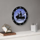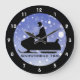 Motoneige Design Horloge contre un arrière - plan neigeux bleu et texte personnalisable. Pour aucun texte, supprimez l'exemple de texte et laissez vide.