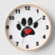 Joli chien noir empreinte de patte et dessins au coeur rouge. Horloge murale décorative personnalisée. Tout ce qui est vu est imprimé. aucune couture réelle ne sera utilisée dans la fabrication. Idée cadeau pour les femmes qui aiment les chiens.