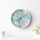 Horloge murale avec dollars de sable et chiffres noirs. Design réaliste de sable dollar avec couleur arrière - plan bleu aqua, cette petite horloge est de forme ronde ou carré. Le thème côtier fonctionne dans n'importe quelle pièce de la maison, ou pour décorer un bureau en bord de mer.
