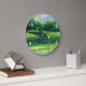 Une aquarelle originale d'Anne Ormsby d'un vert de golf orne cette belle horloge murale.