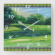 Une aquarelle originale d'Anne Ormsby d'un vert de golf orne cette belle horloge murale.