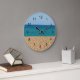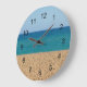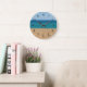 Belle horloge murale sur le thème de la plage aux couleurs bleu, turquoise et bronzé, Idéal pour toute chambre sur le thème de la plage.