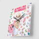 Un cadeau parfait pour la "Swiftie" dans votre vie. Horloge murale "Swiftie" sans peur, Fierce et fabuleuse avec fille blonde et guitare entourée de design de papillons.