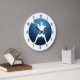 Tireur de crosse. Verrouillé, coincé et prêt à rocher. Silhouette du joueur de crosse tenant le bâton, au milieu de tirer un tir sur le but. Conception d'emblème circulaire en blues avec rayons émanants. Horloge du joueur de crosse. Horloge murale à thème sportif.