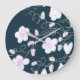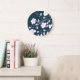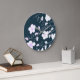 Une horloge design dans un imprimé moderne blanc fleuri. L'arrière - plan bleu foncé peut être changée en n'importe quelle couleur pour s'adapter à votre décor maison.