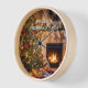 Un arbre joliment décoré au premier plan avec un feu rugissant habillé de bas qui s'estompe dans l'arrière - plan. Une magnifique horloge murale pour ceux qui ne peuvent pas attendre que ce soit Noël ! "C’est sûrement Noël O’Horloge !" Seulement 4 chiffres. Les numéros et le texte sont modifiables pour votre propre message/style