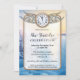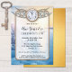 Une invitation magique à la fête du Nouvel An avec une horloge vintage et des ailes élégantes sur un arrière - plan de paysage hivernal. Le dos montre une conception de papier doré.