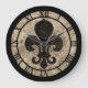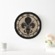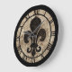 Cette horloge est ornée d'un motif de fleur de lis avec un motif d'horlogerie et d'engrenages