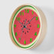 Cette jolie horloge murale de pastèque a un design de fruits ronds qui semble avoir été tranché, alors la chair rose-rouge juteuse montre. Au milieu, douze graines de pastèque noire marquent l'heure et correspondent aux douze numéros de l'horloge verte, faites pour ressembler à elles taillées dans la croûte torchonnée de la baie. C'est une mignonne horloge pour l'été ou pour correspondre à votre décor fantaisiste.