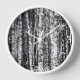 Horloge dans une forêt de hêtres, dans les tons gris fusain / gris et blanc, avec des nombres blancs