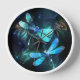 Deux libellules transparentes, lumineuses, turquoise, artistiquement dessinées sur l'arrière - plan de nuit avec des algues luminescentes et des lucioles. libellule éclatante.