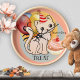 Horloge murale avec un chaton mignon avec ballons festifs et un cupcake. C'est un cadeau d'anniversaire pour un amoureux des chats.