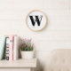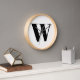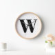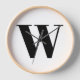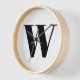 Monogramme personnalisé moderne typographie de lettre initiale élégant mur Horloge. Texte noir personnalisé, arrière - plan blanc. Disponible sous différentes formes (rondes ou carrés) tailles et matériaux