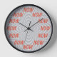 Now Clock - Cercles noir et blanc option illusion avec l'oeuvre Maintenant en orange. Une horloge qui affiche la seule heure qui compte vraiment !