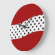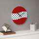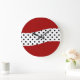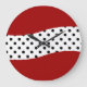 Horloge murale moderne avec une belle combinaison de couleurs rouge, noir et blanc et joli pois sur la face horloge. Conçu pour toute cuisine, chambre, salon ou dortoir. Créé pour les femmes ou les filles, décorez vos murs avec style.