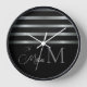 Horloge Monogram Modern Silver Stripes Nom de famille