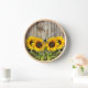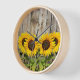 Accédez à l'intérieur de style champêtre grâce à cette horloge murale design de tournesol. Cette horloge rustique présente de joyeux tournesols jaunes avec un arrière - plan de clôture en bois.