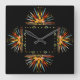 Motif Sunburst animé Horloge sud-ouest avec visage noir arrière - plan noir et carré. Vous pouvez modifier les images motifs éclatantes de ce soleil éclatant coloré aux couleurs du sud-ouest. Thème indien américain. Un grand cadeau pour ceux qui aiment les motifs et les images du désert indien américain.