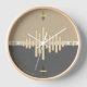 L'horloge murale a des couleurs bloquant arrière - plan de beige-blanc-gris, centré Miel Bees Sound Waves Silhouette et de petites abeilles au miel à 12-3-6-9. Il est sous-titré de texte courbe, "Ecoutez le son des abeilles miel.