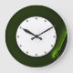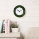 Horloges murales à thème musical avec disque vinyle et platine sur le visage de l'horloge dans cette décoration murale décorative design horloge pour votre cuisine, salle de bain, ou toute chambre dans votre maison vous voulez ajouter un thème musical couleur et caractère. Les couleurs sont le vert noir et blanc.