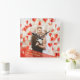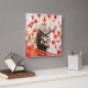 Horloge murale carrée à rideau de cœurs pour 1er anniversaire de mariage.