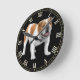 La conception originale de beaux-arts d'un bouledogue anglais amical par l'artiste Carolyn McFann du studio de ronronnement de deux chats a imprimé sur une horloge murale de qualité pour des amoureux de les chiens.