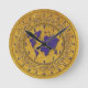 Une illustration 3d de carte du monde avec des fuseaux horaires de texture et d'or sur une horloge murale