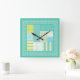 Une jolie horloge murale Carré, avec un faux motif de jonquilles dorées sur le turquoise, en équipe avec des pois assortis, vérifier les ginghams et les rayures, de la collection Posh & Painterly 'Spring Sunshine'.