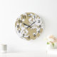 Des horloges en damas avec motifs damassés sur le visage de l'horloge dans cette décoration murale décorative design horloge pour votre cuisine, salle de bains, ou toute chambre dans votre maison que vous voulez ajouter une couleur beige ou blanche.