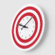 Les horloges de décoration murale de style Bullseye avec un design simple rouge, blanc et noir et des numéros de fantaisie sur le visage de l'horloge conçu pour votre cuisine, chambre familiale, ou toute chambre dans votre maison vous voulez ajouter un certain caractère et style moderne.