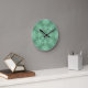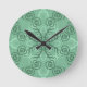 Horloge murale avec un motif détaillé et complexe de feuilles et tourbillonne en vert et blanc. Design symétrique orné en vert apaisant cool.