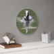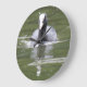 Cette horloge impressionnante présente une photo d'un Coot nageant sur une rivière marémotrice. Ce bel oiseau britannique est noir avec un bec blanc et un marquage sur la tête. Il s'agit d'une espèce commune, mais elle peut parfois être difficile à voir, car elle est plus pâle que d'autres oiseaux aquatiques.