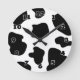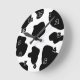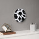 Horloge murale motif des taches de vache | Drôle poster de animal de ferme. Idée cadeau d'anniversaire mignonne pour les amateurs de vaches, cowboys et cowgirls. Fourrure de vache personnalisée avec votre nom, monogramme ou citation. Une vache noire et blanche bouillante cache le design de la peau. Thème occidental.