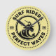 Retro style badge surf caractéristiques graphiques "Surf Riders Perfect Waves" texte, silhouette surfer au centre et jaune clair arrière - plan