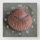 Cette horloge murale de coquillages présente une photo d'un coquillage avec des gravures de coquillages de mer tout autour dans le sable. Une horloge époustouflante pour continuer le thème du coquillage ou de la plage dans votre maison. Copyright Kathy Henis