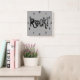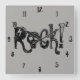 Musique cool à thème. Le rock est écrit en gros caractères noirs sur un arrière - plan gris. Des têtes de crâne amusantes remplacent les lettres o. Les chiffres sont dans une police de roche cool.