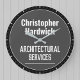 Horloge murale professionnelle pour une entreprise de services architecturaux. Couleurs noir, gris et blanc. Modifiez la conception pour modifier le libellé en fonction du destinataire.