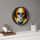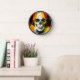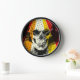 Cette horloge murale accrocheuse présente un design crânien saisissant avec des rayures rétro audacieuses et des pois, mêlant des vibes de carnaval vintages avec un bord rebelle. Parfait pour les amateurs d'esthétique audacieuse avec une touche de macabre.