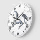 Cheval stylisé noir et blanc - horloge parfaite pour l'équitation