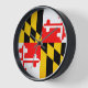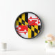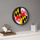 Horloge murale ronde avec l'image du drapeau de l'état du Maryland.
