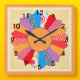 Une horloge à thème à motifs colorés et à motifs avec des numéros noirs audacieux et faciles à voir. Conçu dans le motif de blocs de courtepointe circulaire traditionnel "Dresden Plate", richement stratifié avec des teintes violettes et oranges. Voir beaucoup d'autres horloges à thème couture dans cette collection à l'horloge O Rama sur Zazzle.