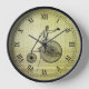 Graphiques : arrière - plan tartan passé, vélo antique avec cavalier, cadran romain