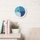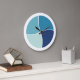 Horloges murales modernes aux cercles géométriques colorés dans différentes nuances de bleu sur un arrière - plan blanc. Conçu pour une décoration moderne ou contemporaine, vous découvrirez vos murs dans un style coloré. Parfait pour un séjour, une salle à manger, une chambre ou une salle de bain.