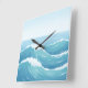Horloge murale minimaliste d'inspiration océanique avec vagues d'aquarelle bleu et blanc. Parfait pour les maisons de plage et les intérieurs relaxants