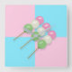 Un arrière - plan bleu et rose à damiers rappelant les pétales de Sakura flottant doucement dans un ciel de printemps frais a été ajouté au design "Dango Away". L'ajout d'une légère ombre aide le dango à vraiment éclater.